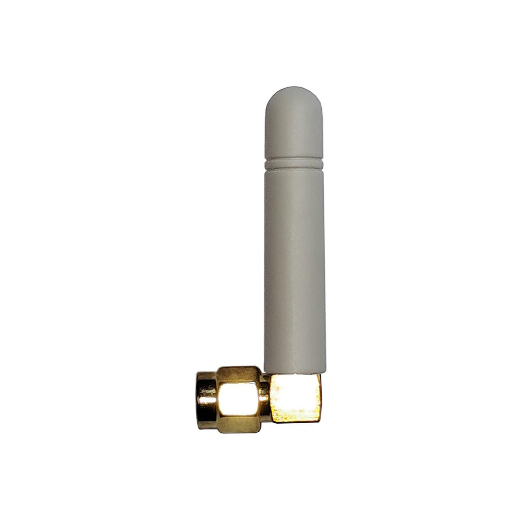 Right angle stubby 433Mhz antenna (50mm long), 1dBi gain with SMA male connector.