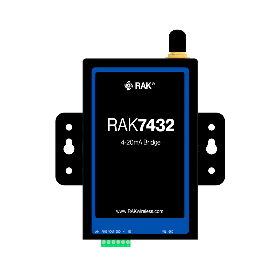 RAK7432 WisNode Bridge Analog is a 4-20 mA analog to LoRaWAN converter designed for industrial applications. It can read values from devices supporting the current loop.