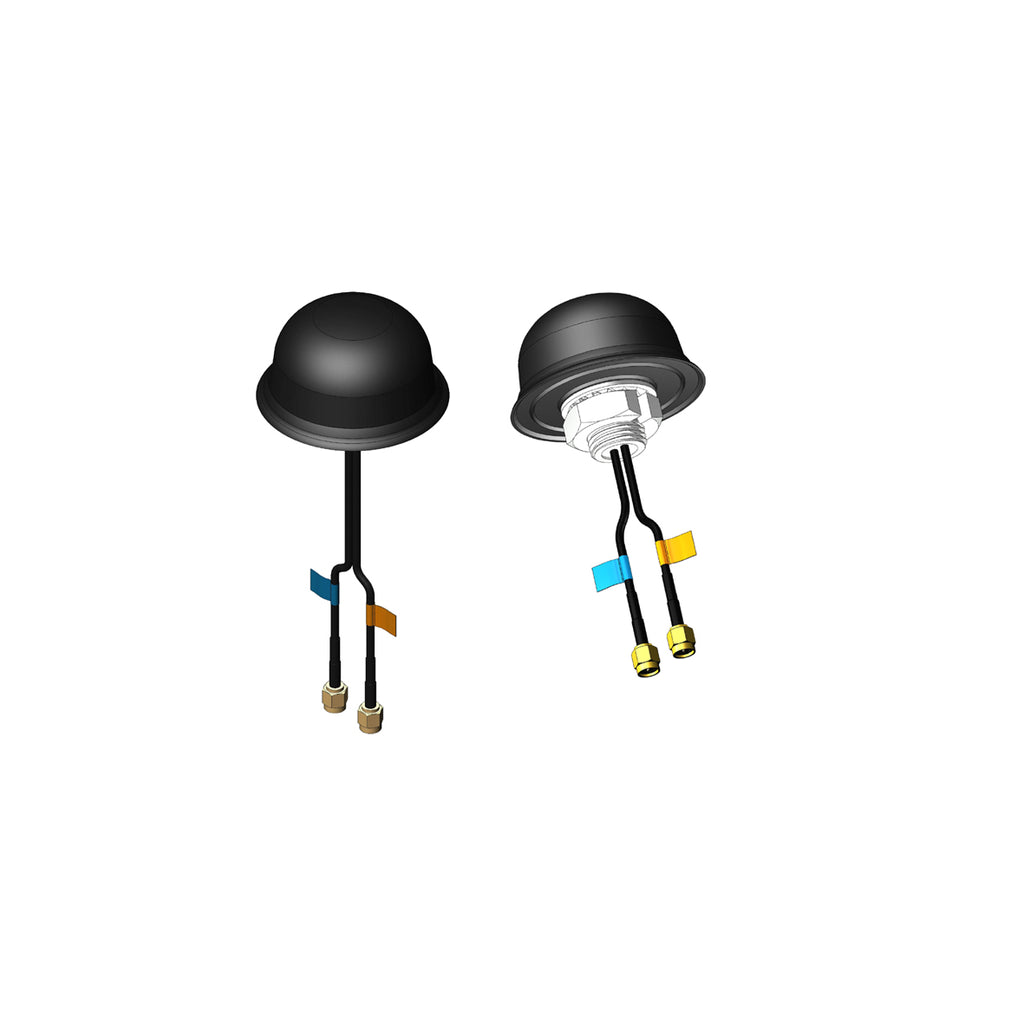 Rugged vandal proof IP67 roof mount outdoor GPS and GSM combined antenna with two 2 mtr cables and SMA plugs.